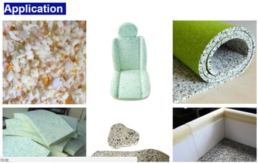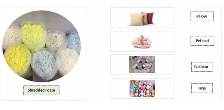 It’s mostly used for the productions of re-bonded furniture, mattress, bedding, pillow, cushion, toys ,sofa as filling usage .